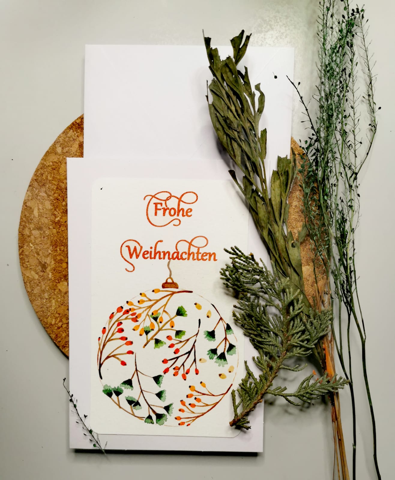 Jede Grußkarte ist handgemacht und wird einschließlich Umschlag in einer Schutzfolie versendet.