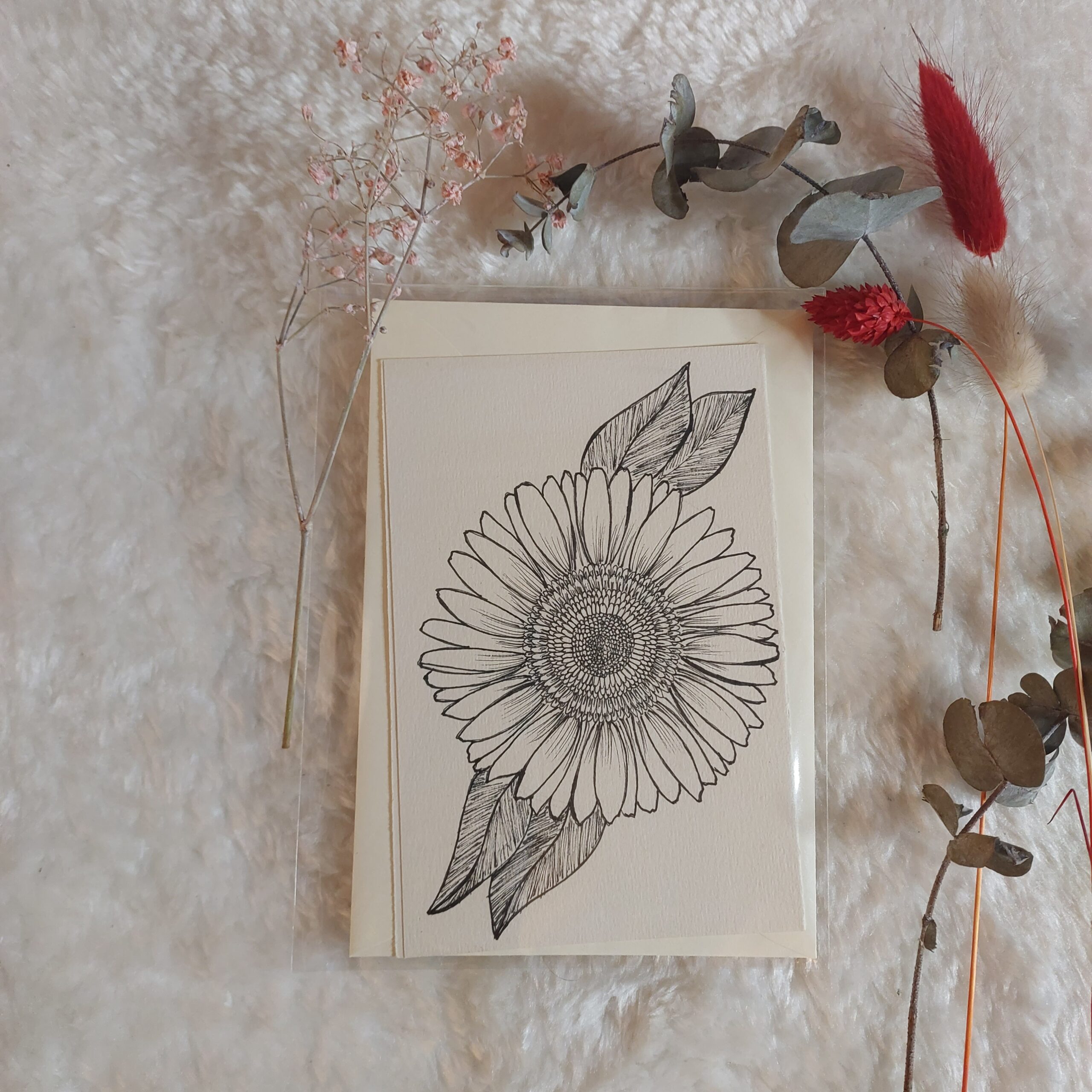Jede Grußkarte ist handgemacht und wird einschließlich Umschlag in einer Schutzfolie versendet.