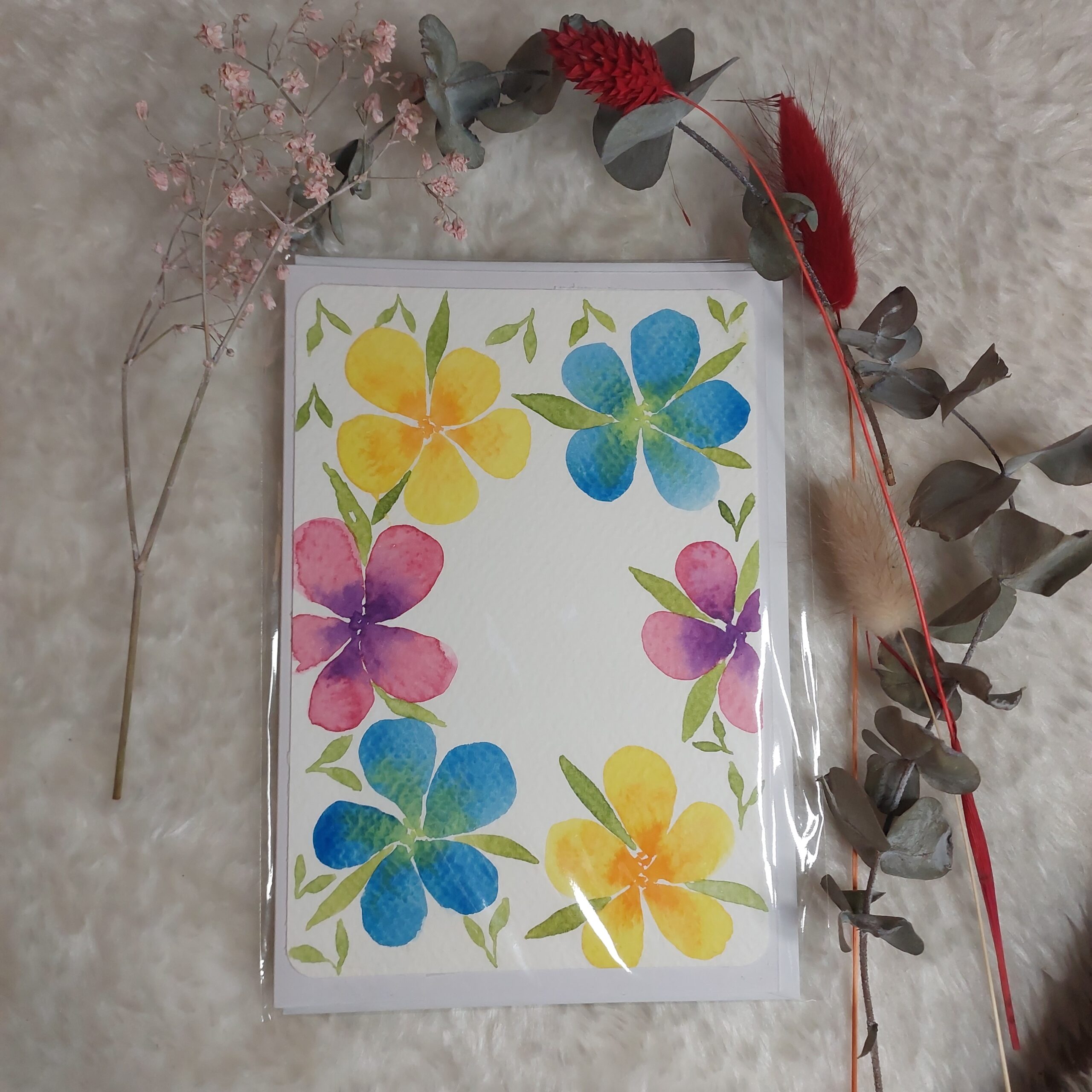 Jede Grußkarte ist handgemacht und wird einschließlich Umschlag in einer Schutzfolie versendet.