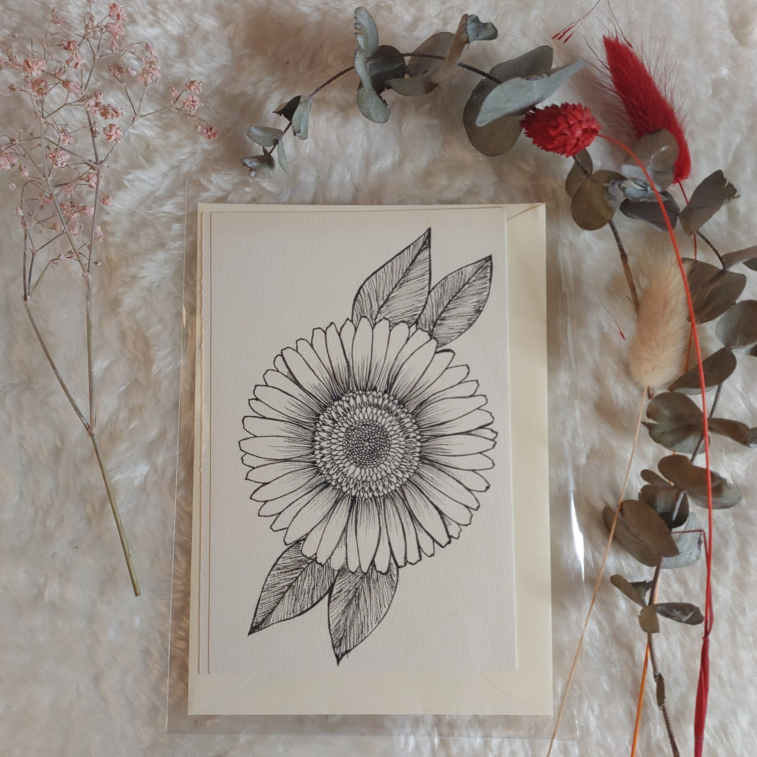 Jede Grußkarte ist handgemacht und wird einschließlich Umschlag in einer Schutzfolie versendet.